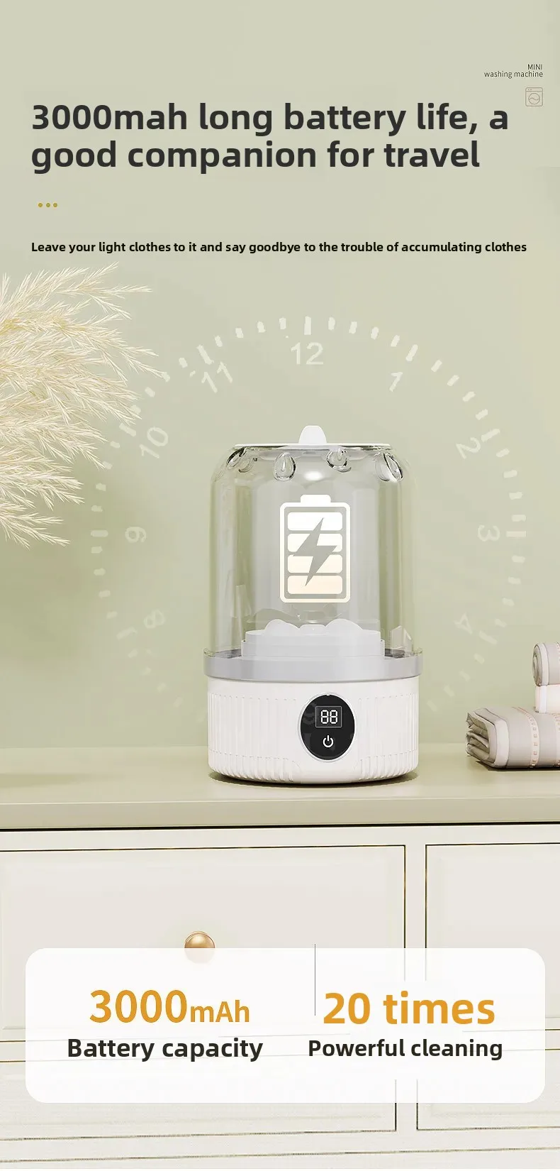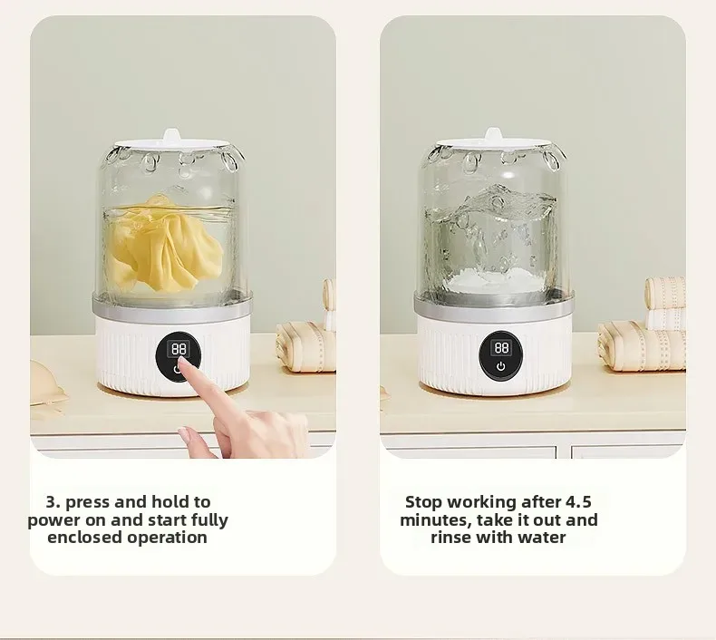 Feature-Mini Electric Laundry Cup Cordless Small Washer